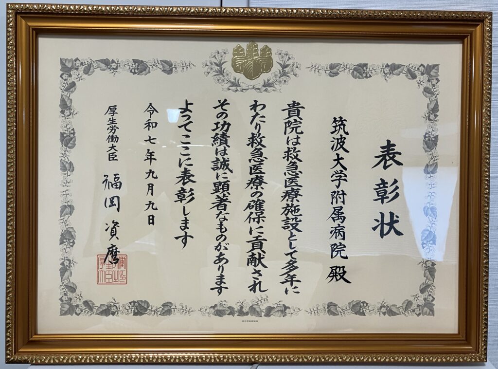 当院は令和7年9月9日に、本年度の救急医療功労者厚生労働大臣表彰を受賞しました。