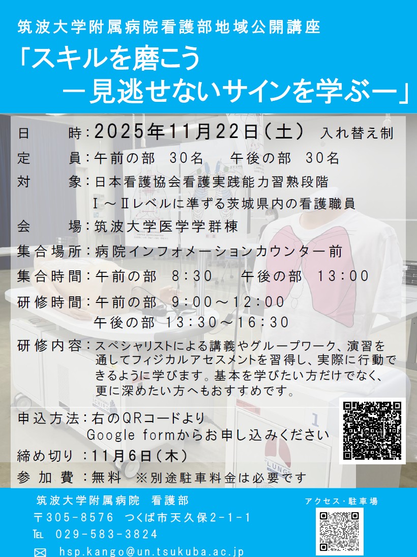 当院の集中ケア認定看護師、クリティカルケア認定看護師よる講義やグループワーク、演習を通してフィジカルアセスメントを習得し、実際に行動できるように学びます。