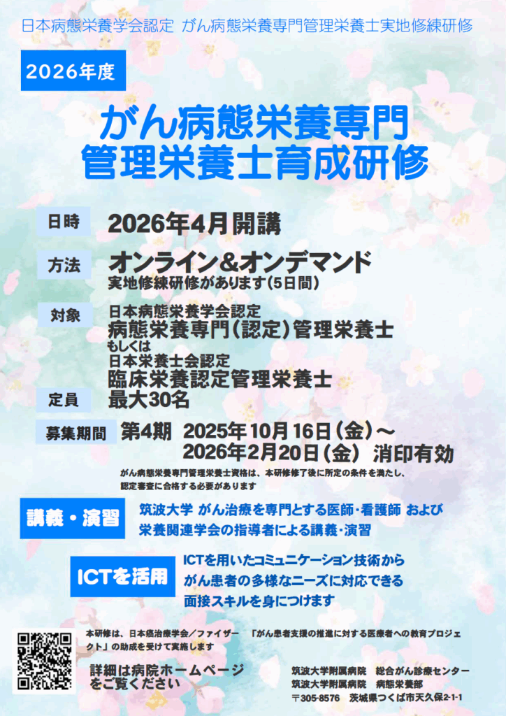 2026年度 がん病態栄養専門管理栄養士養成研修募集