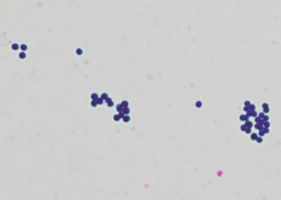 染め上がったスライドガラスを顕微鏡で観察し、細菌の存在と数を確認し、結果として報告します。