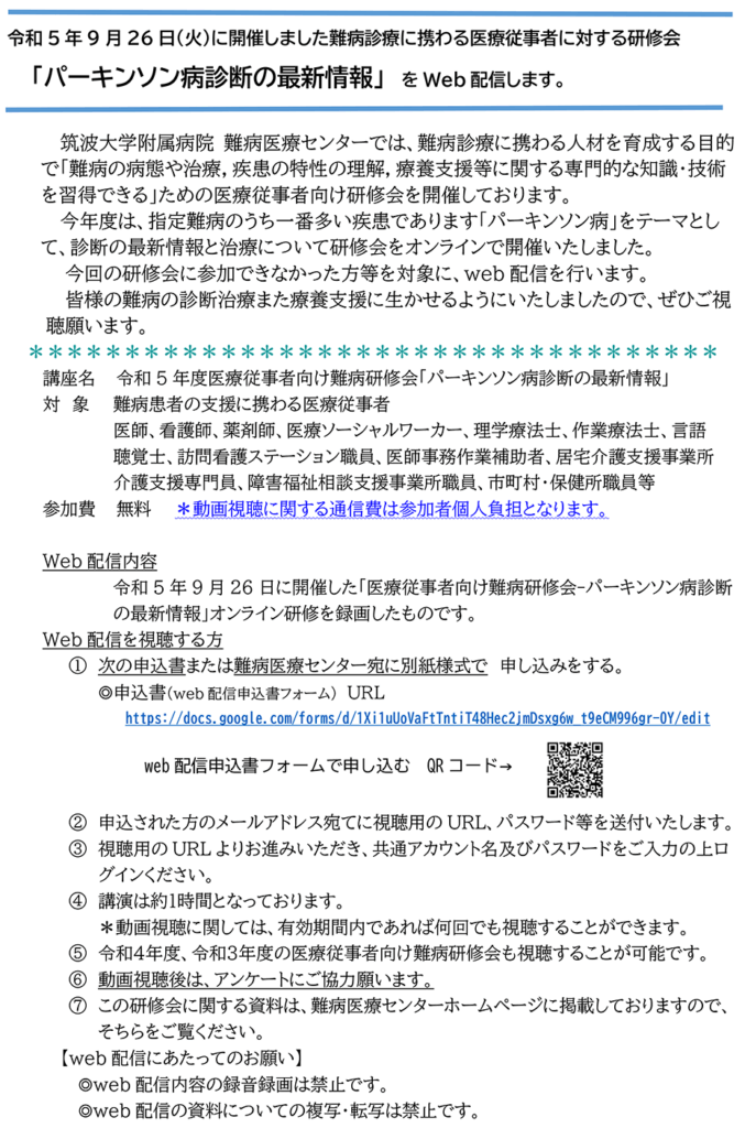 令和5年度 難病診療に携わる医療従事者に対する研修会「パーキンソン病診断の最新情報」(9月26日開催)