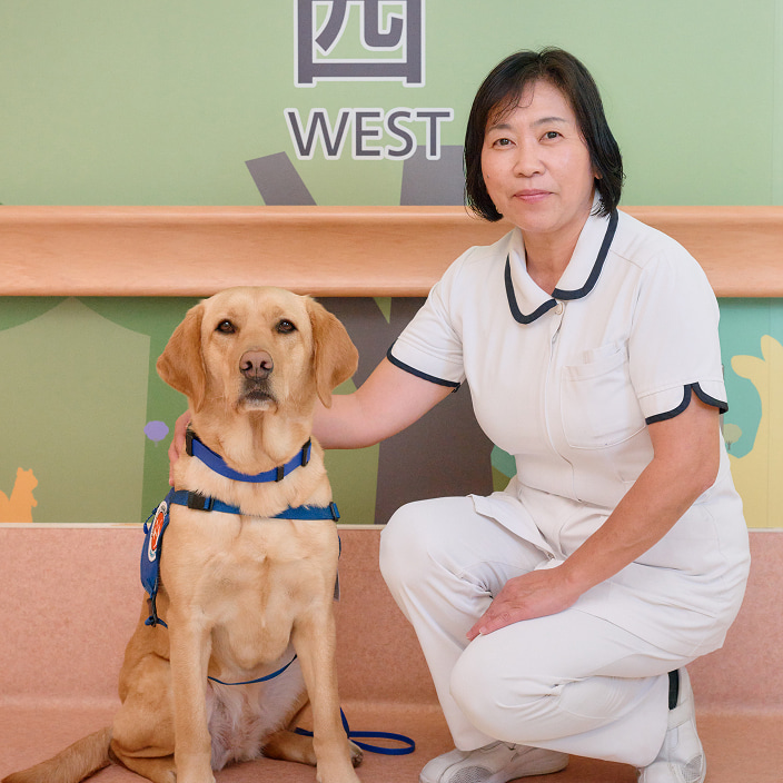 ファシリティードッグと共に歩むこれからの時間が、お子さんやご家族にとって、少しでも心が軽くなる瞬間となり、医療者にとってもケアの本質を改めて見つめ直す機会となることを願っています。看護部は、人のいのちと心に寄り添う専門職として、この新しいケアのかたちを大切に育み、より質の高い心のこもった医療の実現に努めていきたいと考えています。