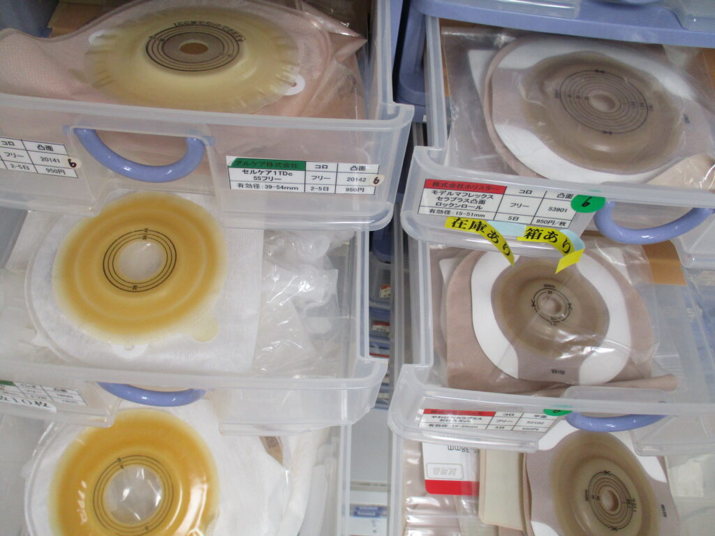 ストーマ貼り替え時に必須の物品です。多い時には1日6人以上のパウチ交換があり、物品は争奪戦です。他の病棟ではあまりお目にかかれないものかも・・・。