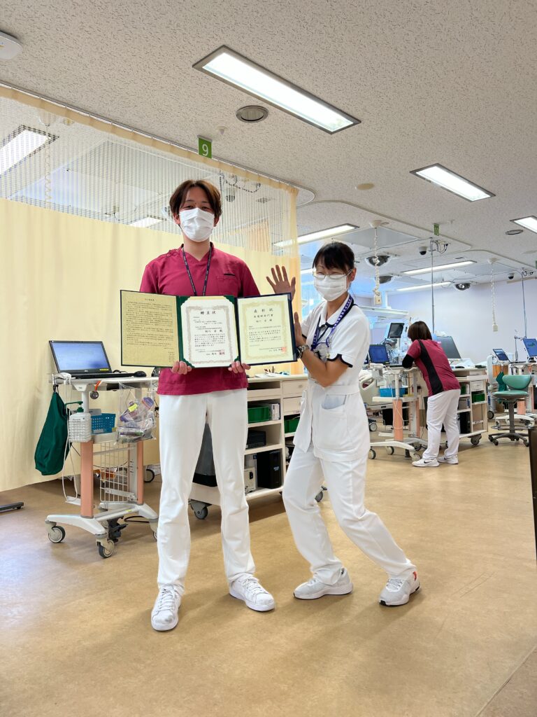 入職時からICUで勤務され、中核的なスタッフとして尽力していただきました。後輩育成よろしくお願いいたします。(^^ゞ