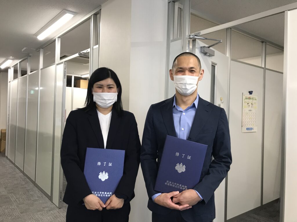 山崎さんは「血糖コントローに係る薬剤投与関連」を、中島さんは「集中治療領域」の研修を修了されました。ご活躍に期待しております。(^_-)-☆