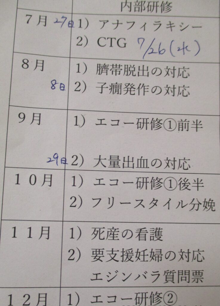 お産の症例を振り返る自主学習ノートを持っていたり、お産の振り返りで何度も先輩に声をかけてきてくれたり。一つ一つのお産をとても大切にしている姿勢が見受けられました。後輩たちの頑張っている姿を見て、とても応援したい気持ちになると同時に、私も頑張らなくては!…と、私自身も身が引き締まる気持ちになりました。