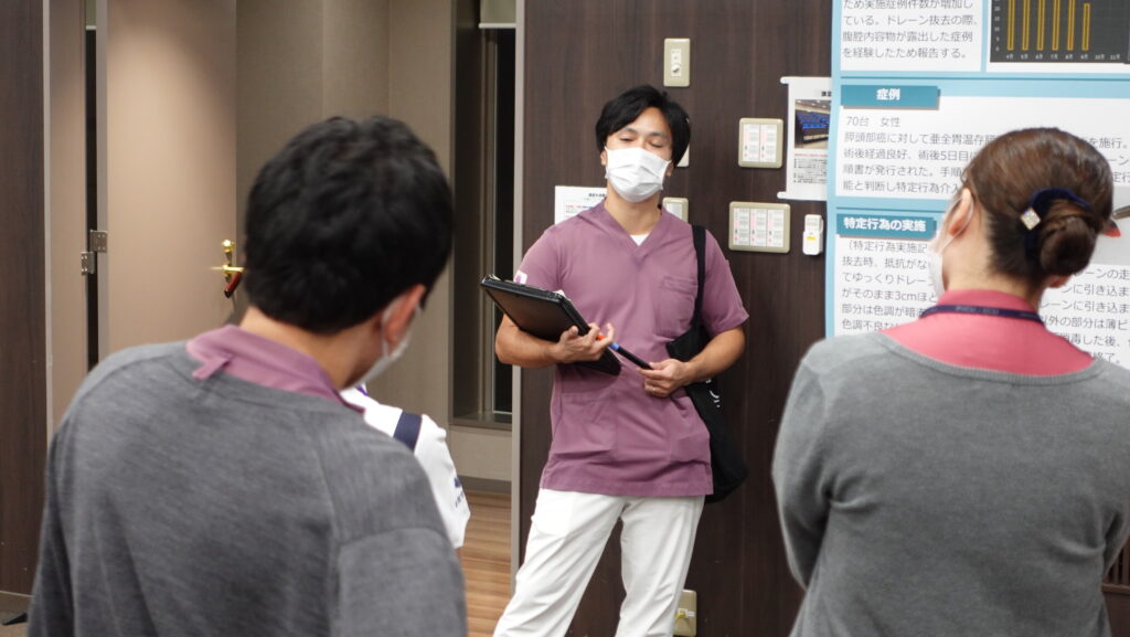 報告に先立ち、特定看護師の活動状況や特定行為研修について説明がありました。