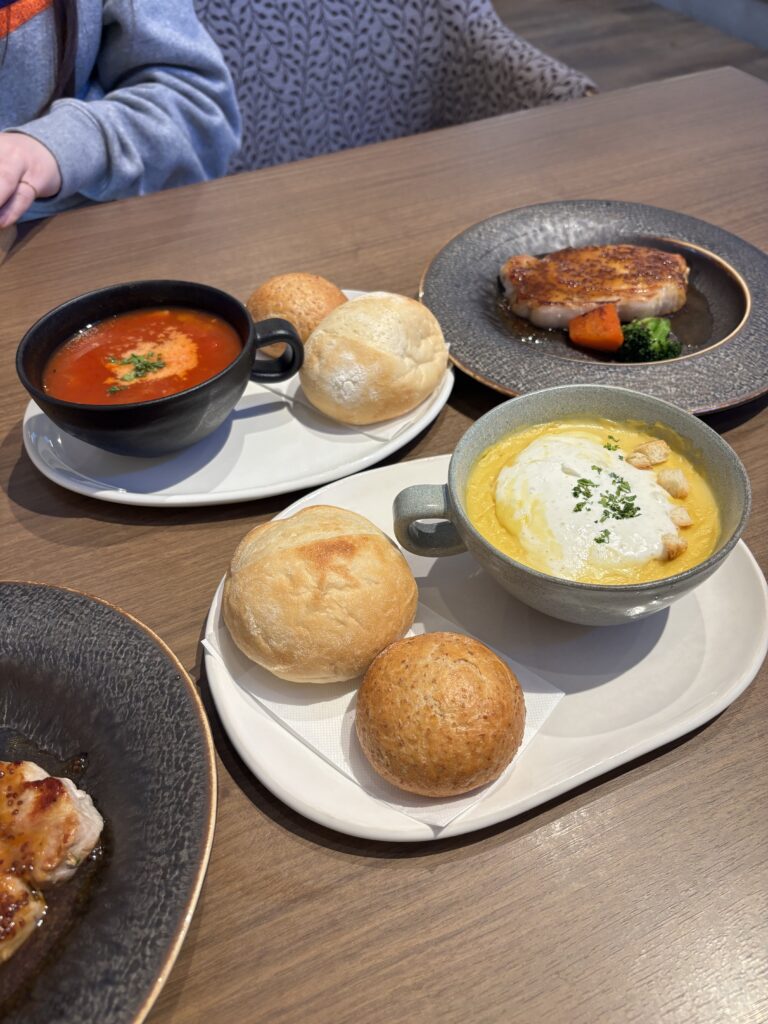 ミネストローネとコーンポタージュを選びました。寒い日に飲む温かいスープは最高でした。パンやお肉もおいしかったです!秋冬はスープカフェ、春夏はかき氷専門店になるみたいです。また夏に行ってみようと思います!