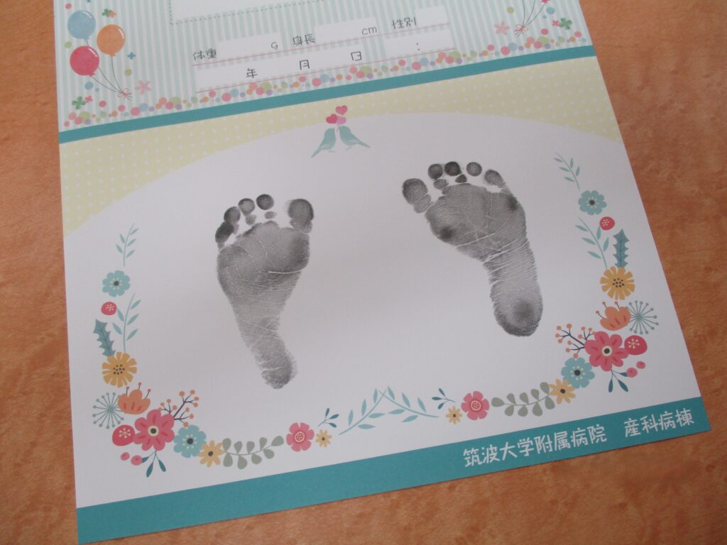 当院では、赤ちゃんの誕生の記念として「足形」をプレゼントしています。生まれたばかりの小さな足あとには、その瞬間の大切な思い出がぎゅっと詰まっています。