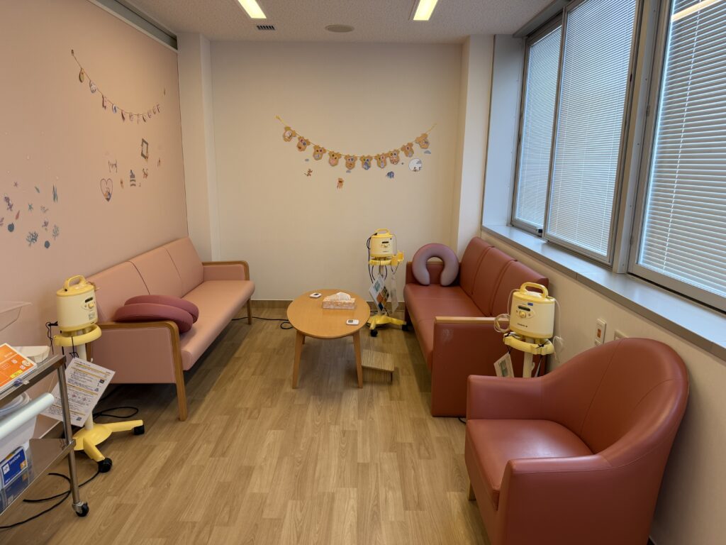 授乳室は、赤ちゃんに母乳をあげたり、搾乳をするためのお部屋です。母子でリラックスして授乳ができるよう、静かで落ち着いた雰囲気に配慮した装飾を行っています。搾乳器も完備しており、赤ちゃんが直接母乳を飲めない場合でも、搾乳することで母乳を届けることもできます。