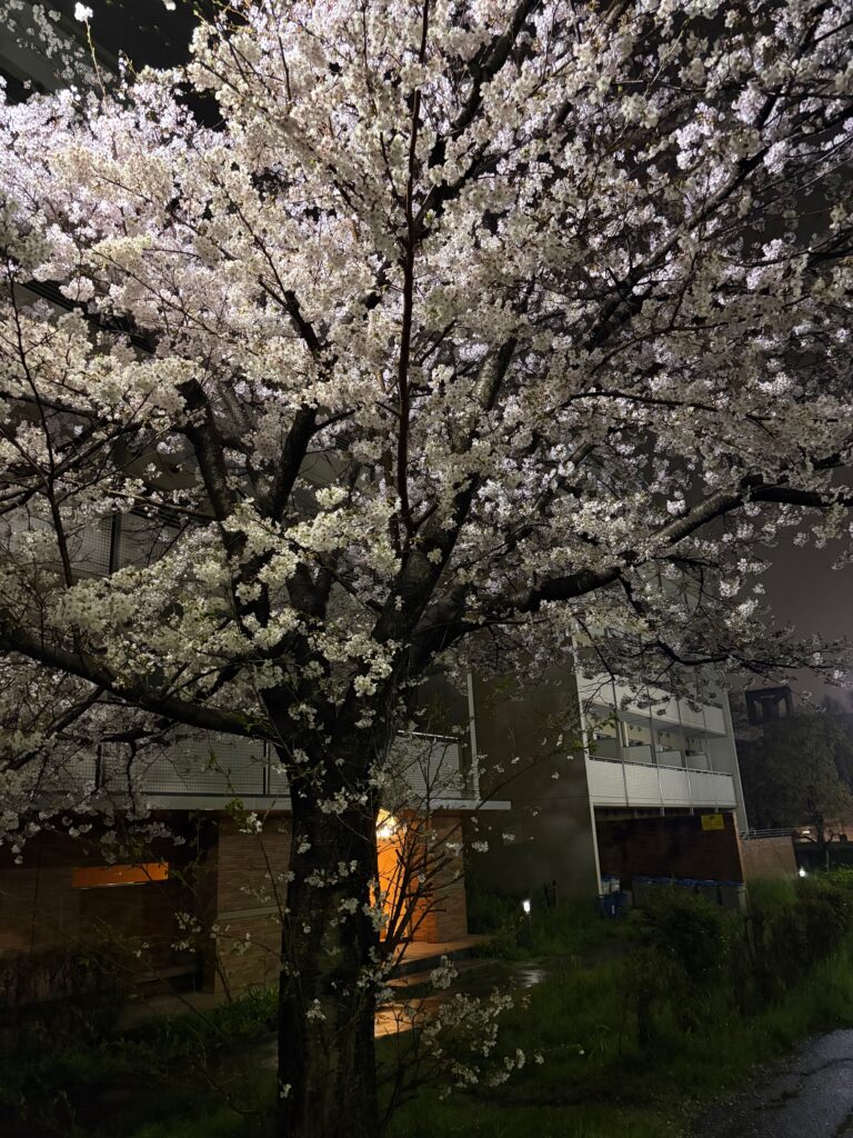 新年度初日はあいにくの雨でしたが、看護師宿舎前の桜は咲き誇っていました。来年もこんな桜が見れるのがたのしみですね
