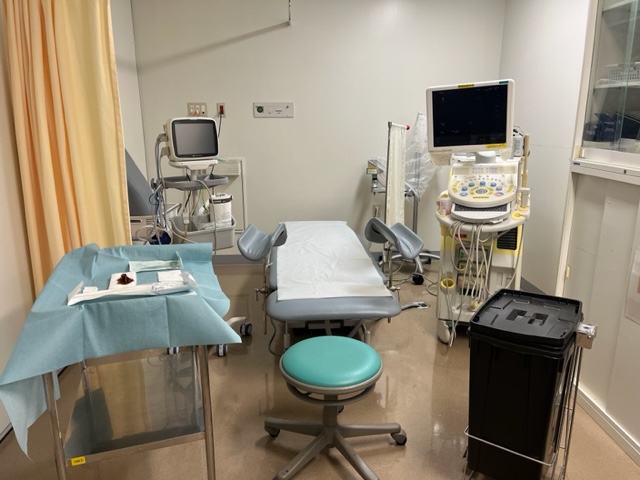 まずは泌尿器外科の特徴として、病棟処置室の中に砕石位がとれる処置台があります。ここでは前立腺生検やエコー検査など、様々な処置が行われています。