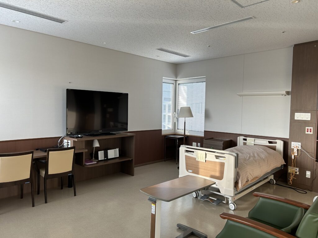 このお部屋は特別室Cです。特別室Sと比べると小さく感じますが、普通の個室よりも大きいです。