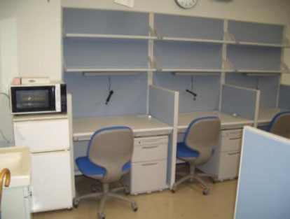 • 研修医専用の部屋に研修医一人一人に机・ロッカーを完備。